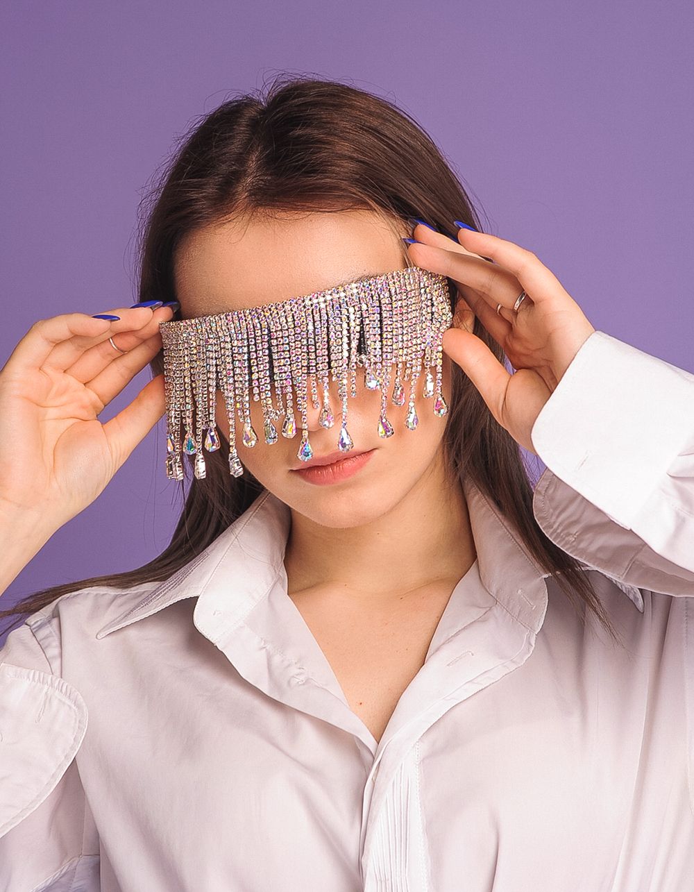 Окуляри сонцезахисні маска з ланцюжками із страз