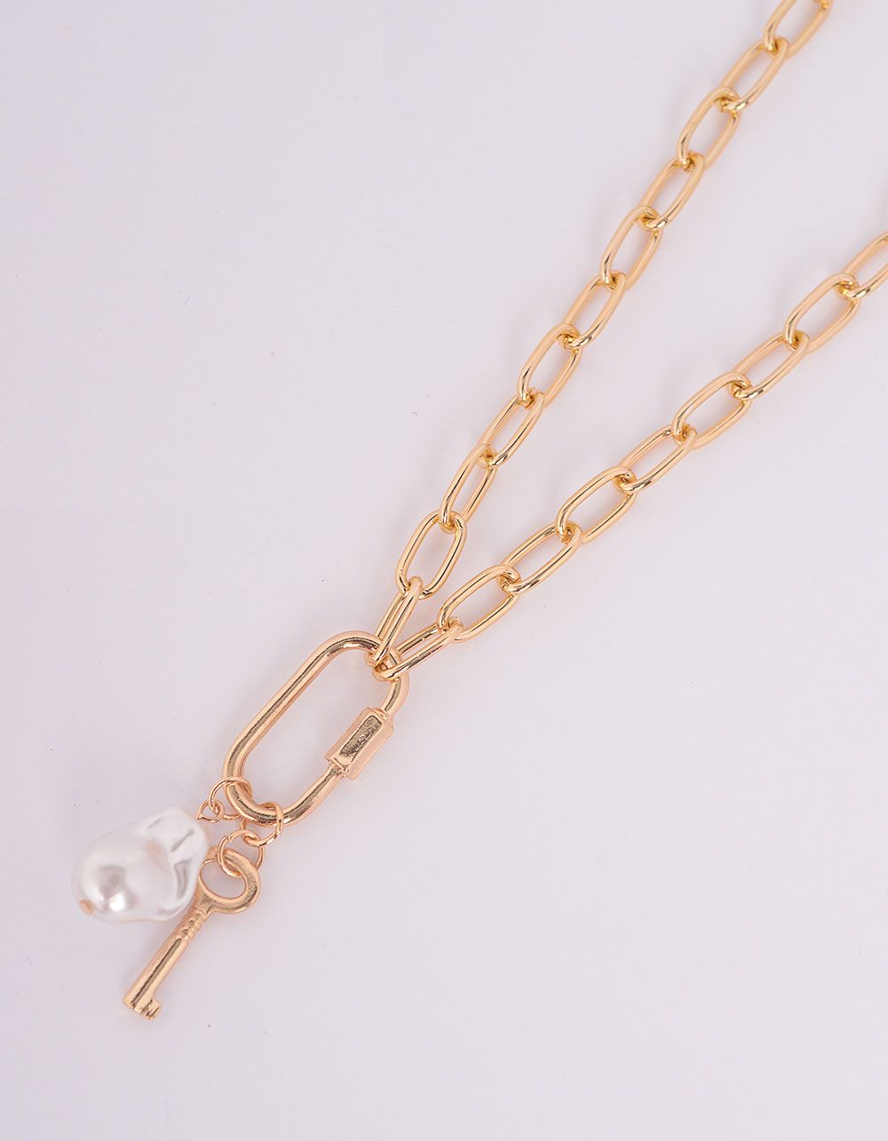 Чокер із ланцюжка з кулоном у вигляді ключа та перлиною
