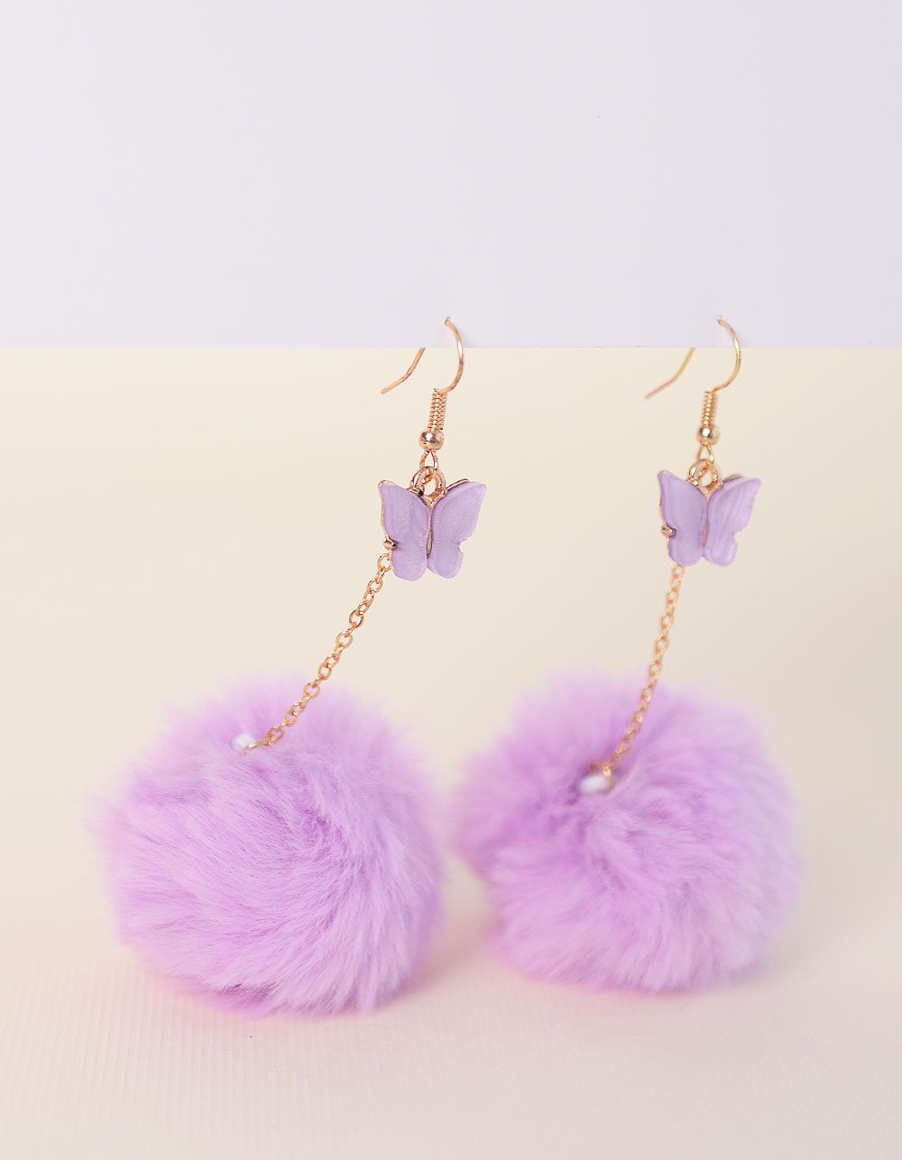 Сережки подовжені з метеликами та хутряними кульками