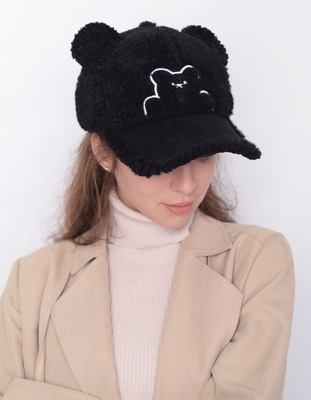 Бейсболка хутряна з вушками та зображенням ведмедика