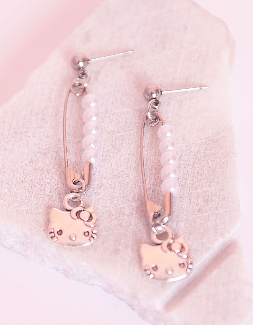 Сережки у вигляді булавки з Кітті та перлинами