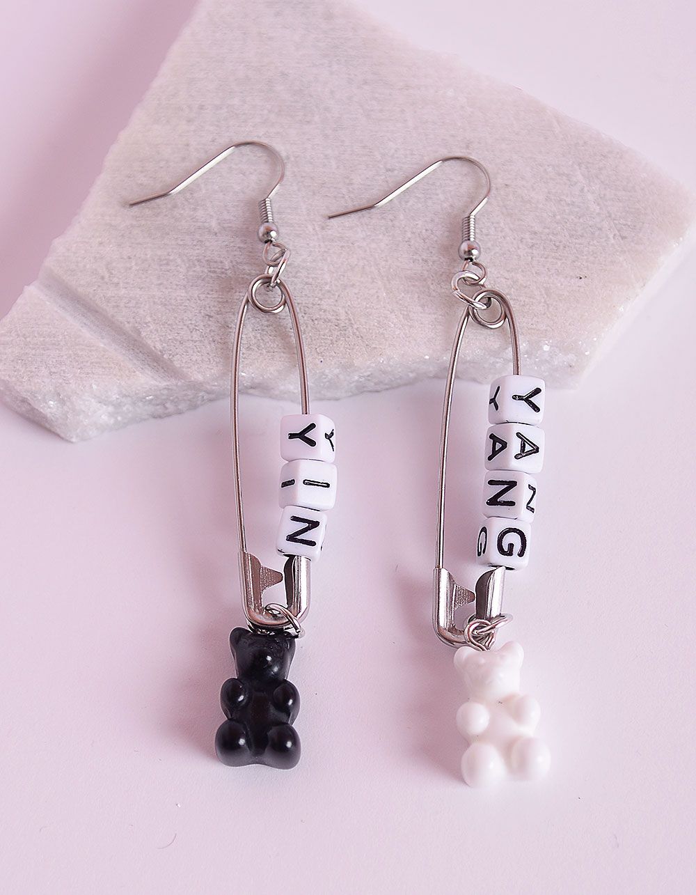 Сережки довгі у вигляді булавок з ведмедиками