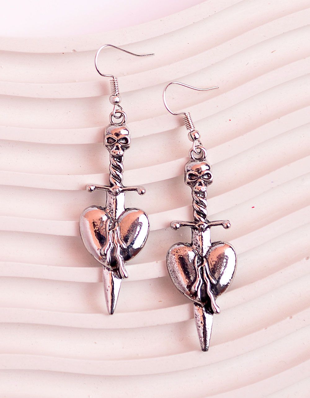 Сережки у вигляді серця на кинджалі з черепом