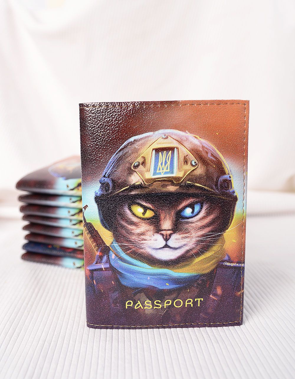 Обкладинка на паспорт з принтом кота з тризубом
