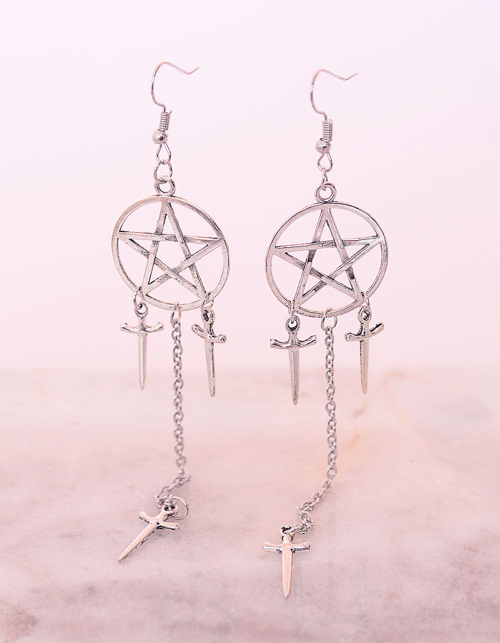 Сережки довгі з зірками та кинджалами