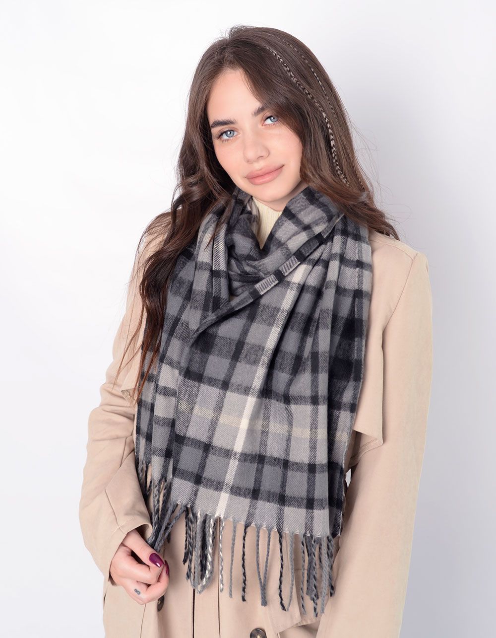 Палантин у клітинку з бахромою