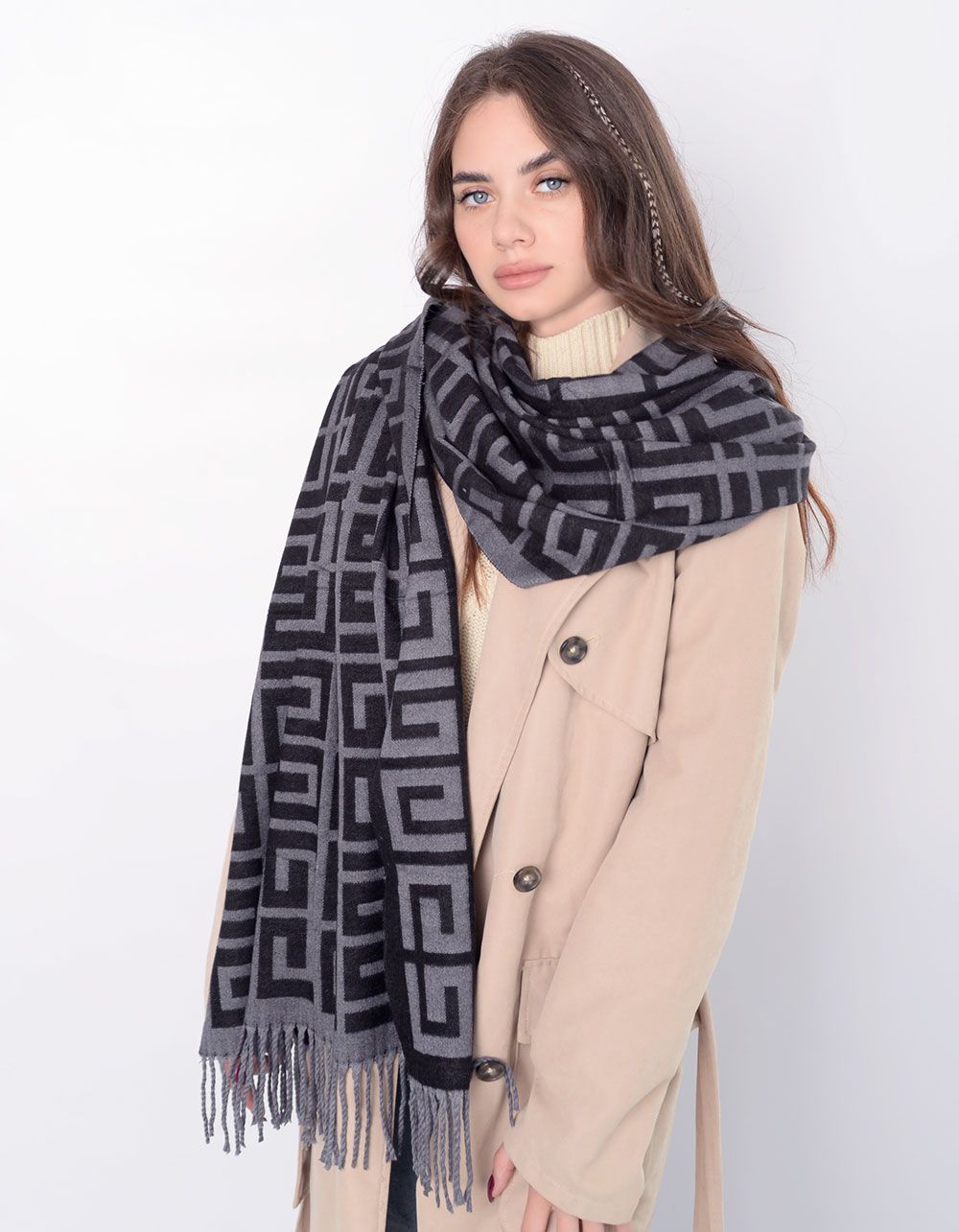 Палантин з орнаментом та китицями