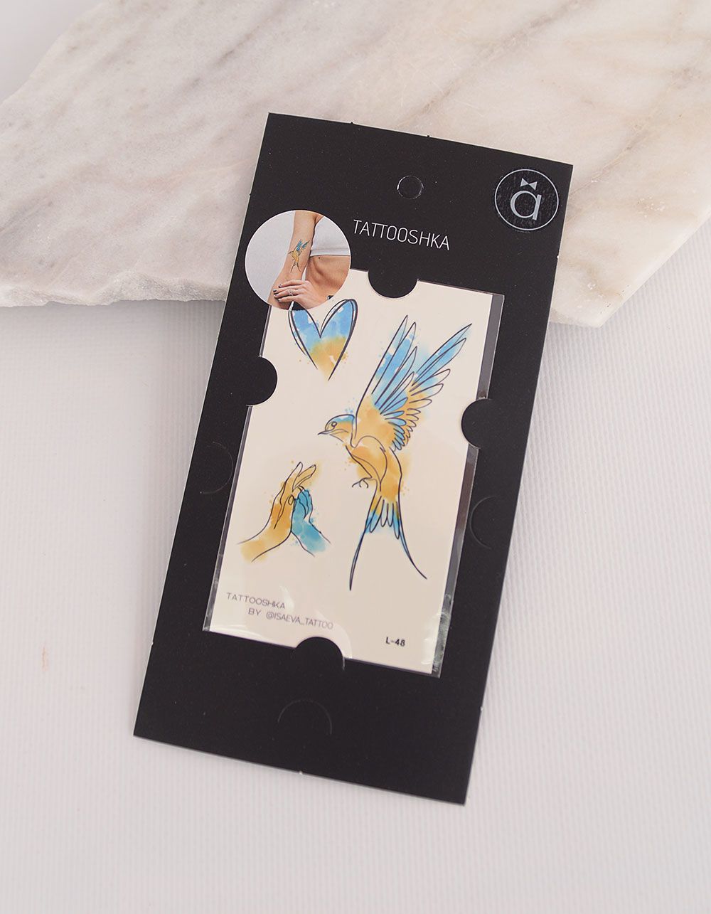 Тату тимчасове з зображенням жовто-блакитного птаха