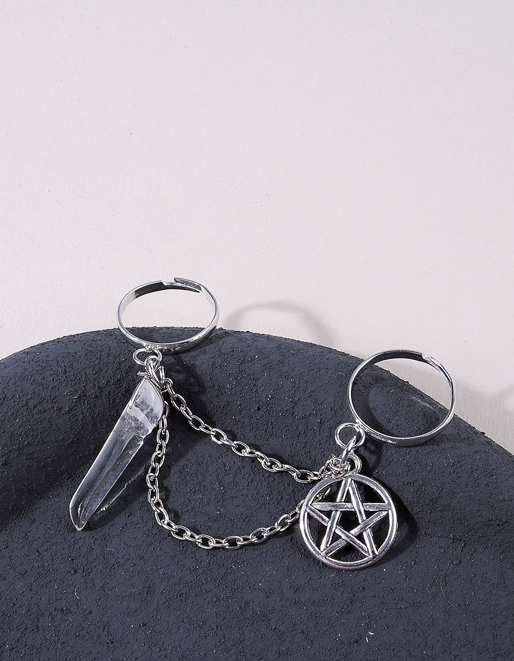 Кільце подвійне з кристалом та ланцюжком