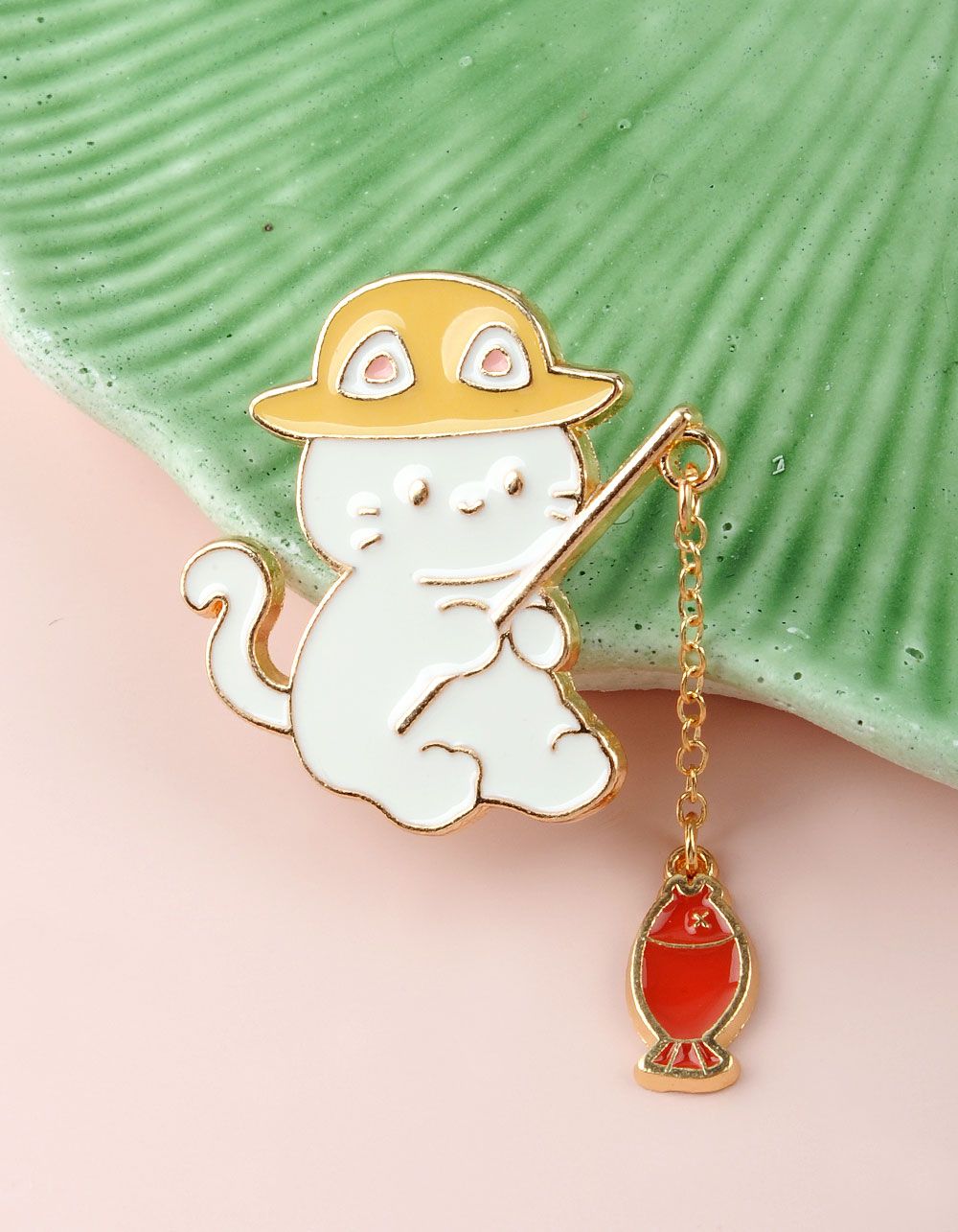 Брошка із зображенням котика з рибкою