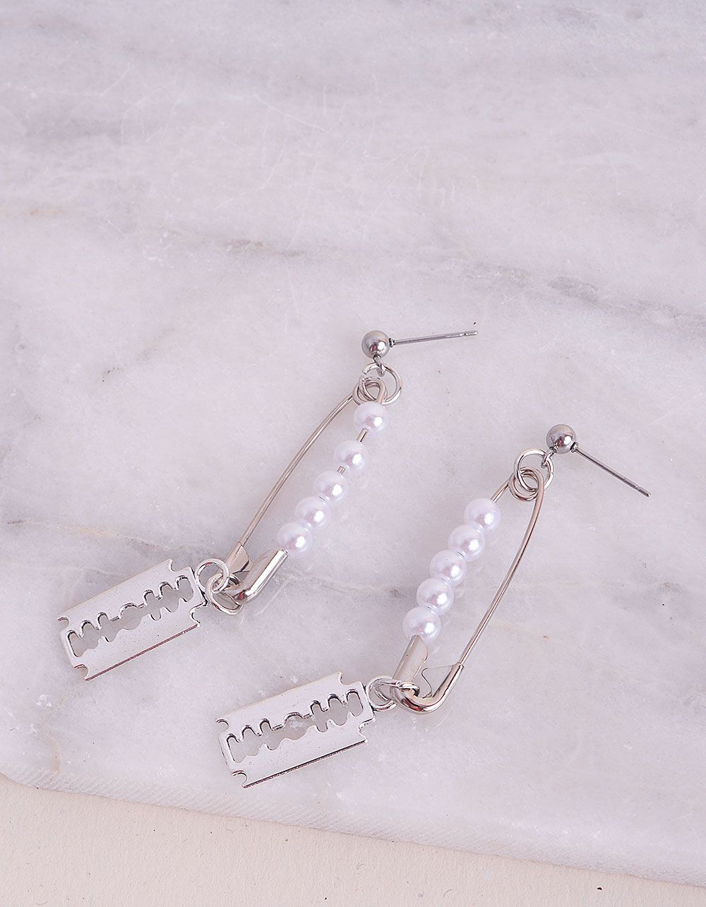 Сережки у вигляді булавки з перлинами та лезом