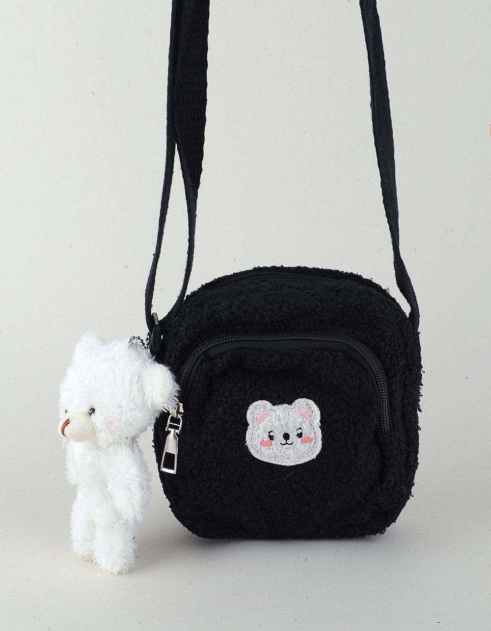 Сумка на довгому ремінці хутряна з брелоком у вигляді ведмедика