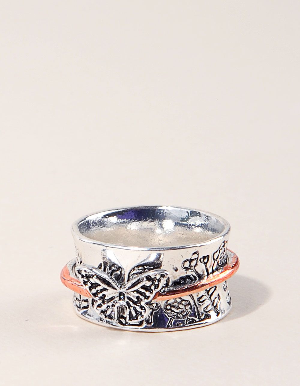 Кільце широке з метеликом та зображенням квітів