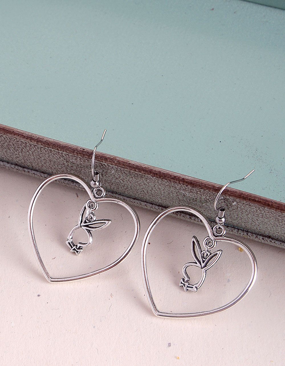 Сережки у вигляді сердець з кроликом із playboy