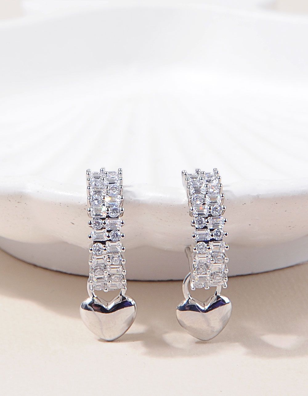 Сережки з серцями інкрустовані стразами