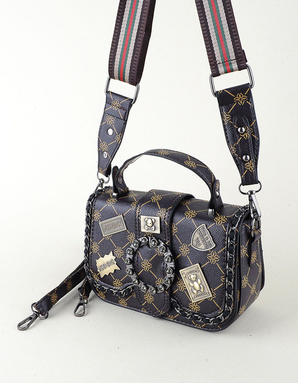 Сумка на широкому смугастому ремінці з зображенням ведмедика на фурнітурі