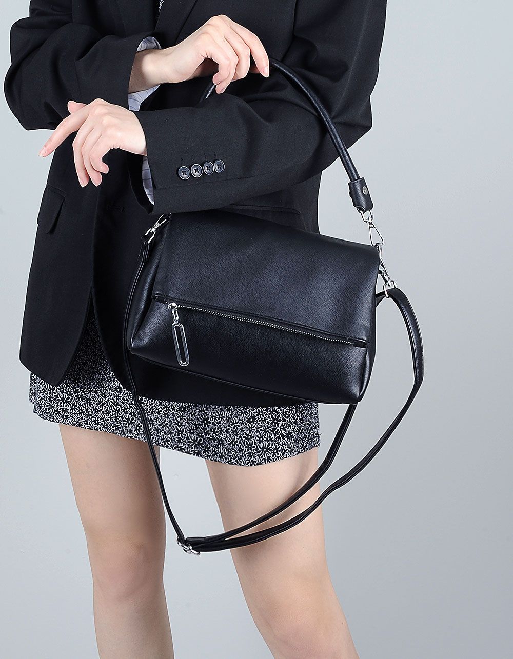 Сумка на довгому ремінці з фурнітурою та кишенею у клапані