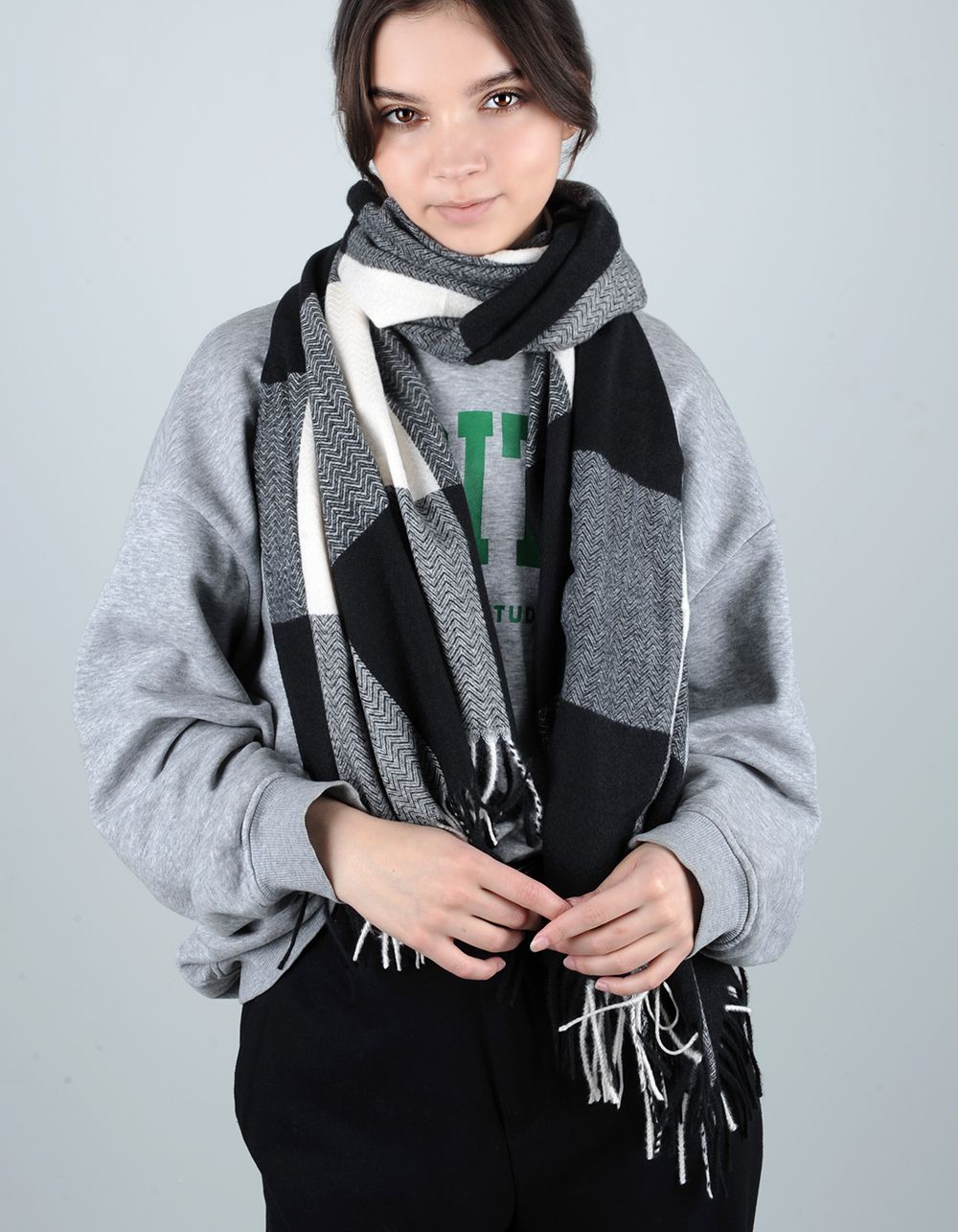Палантин у клітинку з китицями