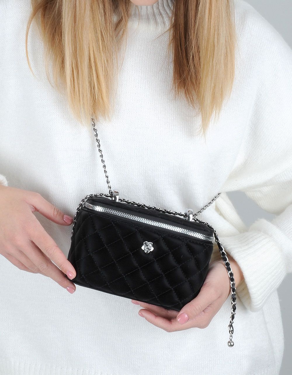 Сумка на ланцюжку у твердому корпусі стьобана з квіткою