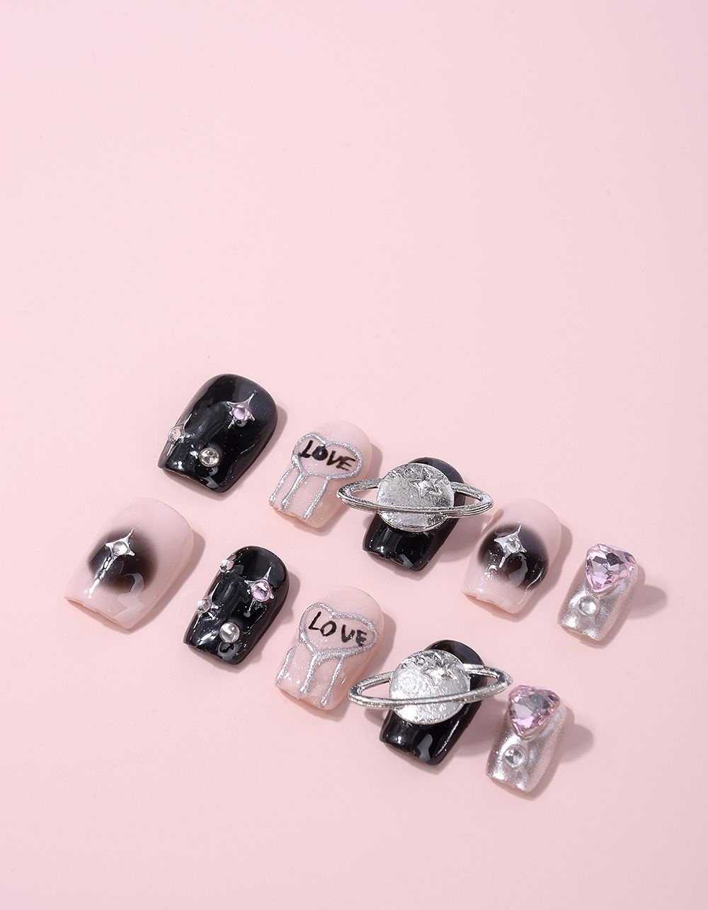 Нігті накладні з декором у вигляді Сатурна та зірок