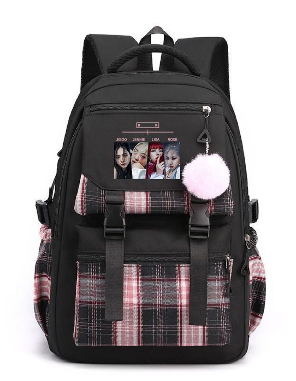 Рюкзак для міста з принтом у клітинку та хутряним брелоком