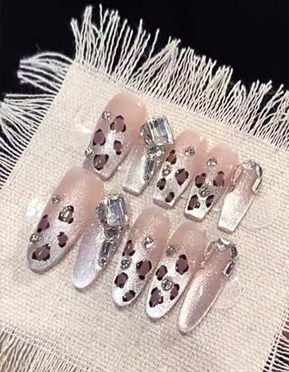 Нігті накладні з леопардовим малюнком та стразами