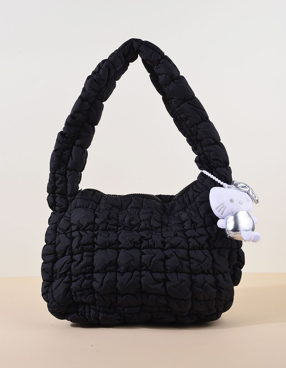 Сумка на плече стьобана з брелоком у вигляді кицьки