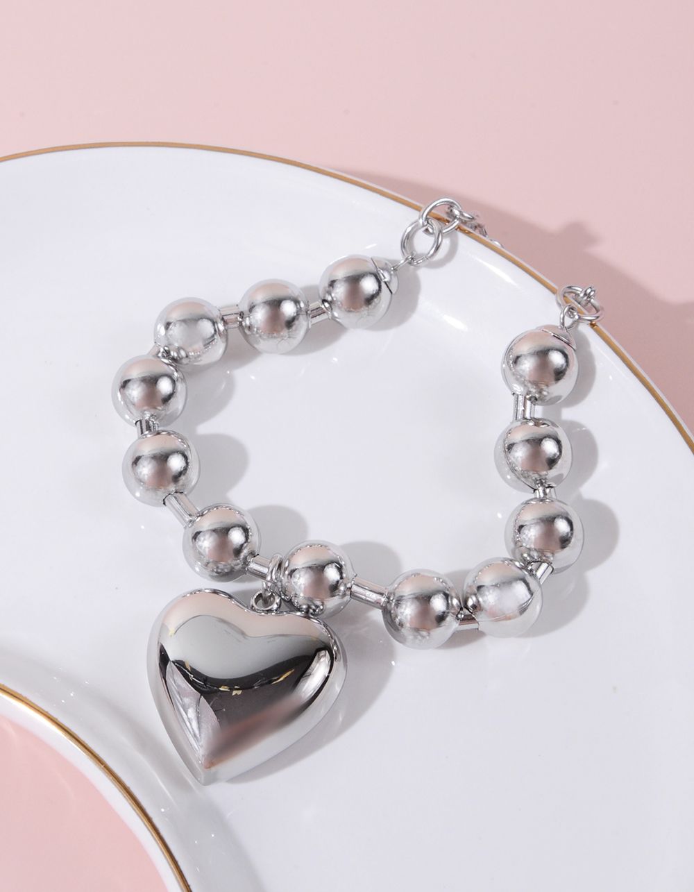 Браслет на руку із намистин з підвіскою у вигляді серця