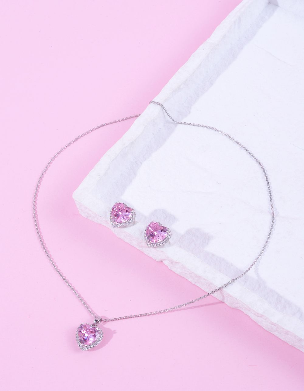 Комплект із підвіски на шию та сережок з кристалами у вигляді серця