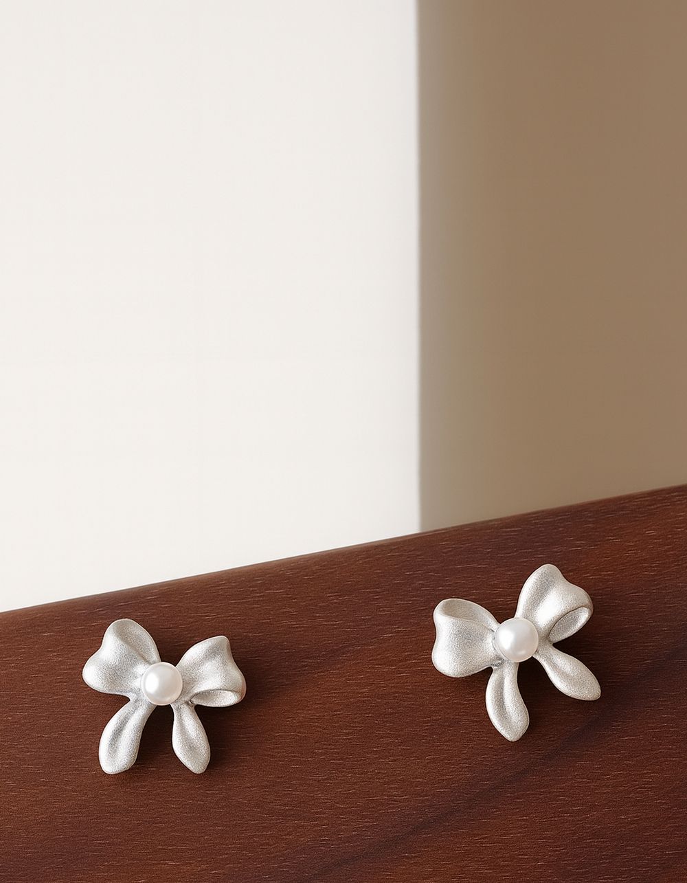 Сережки пусети у вигляді банта з перлиною