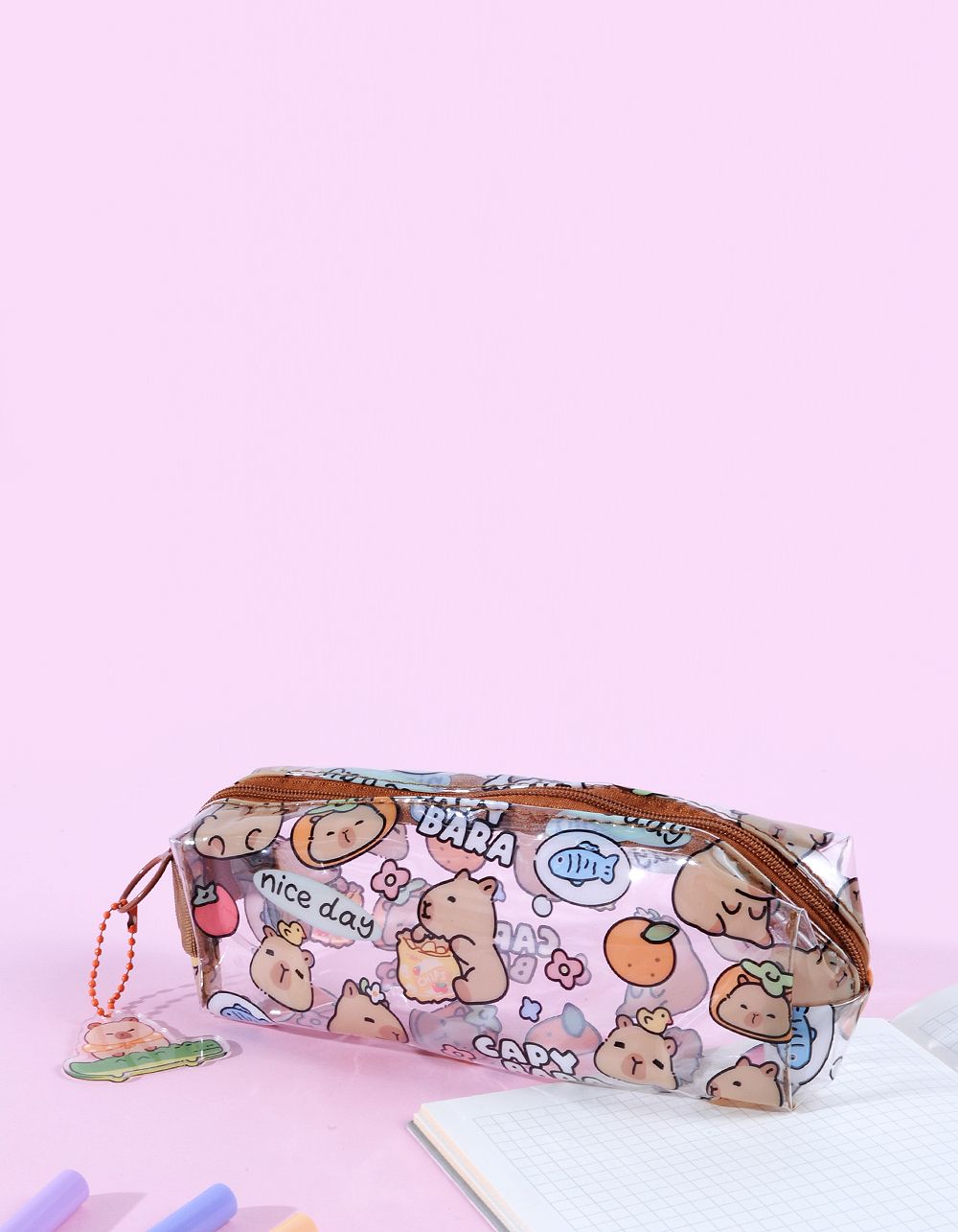 Пенал з брелоком та принтом капібари