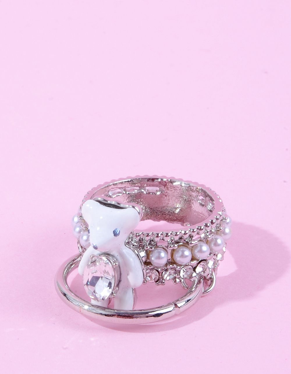 Кільце широке з ведмедиком та перлинами