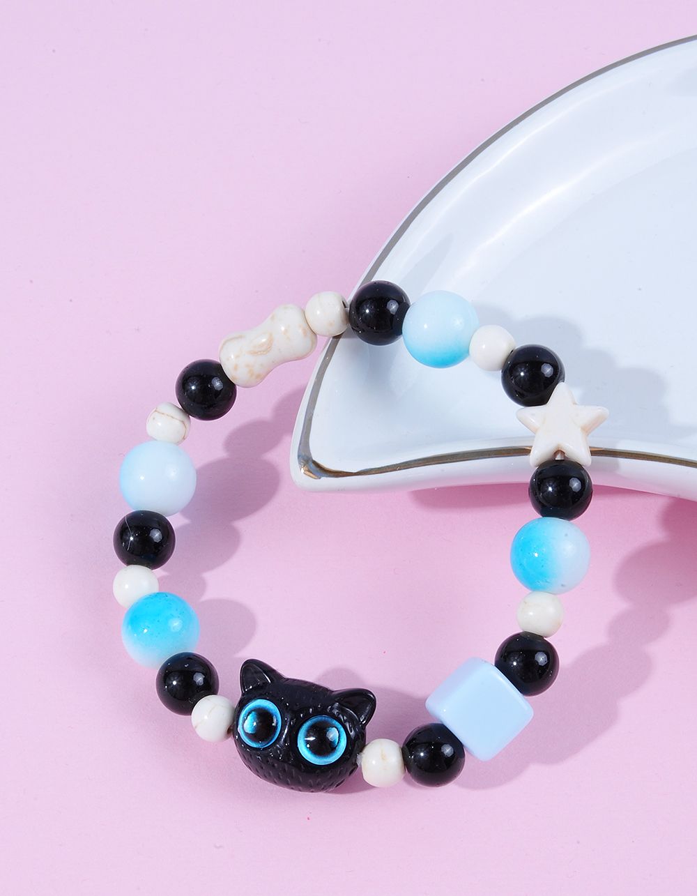Браслет на руку із намистин з котиком