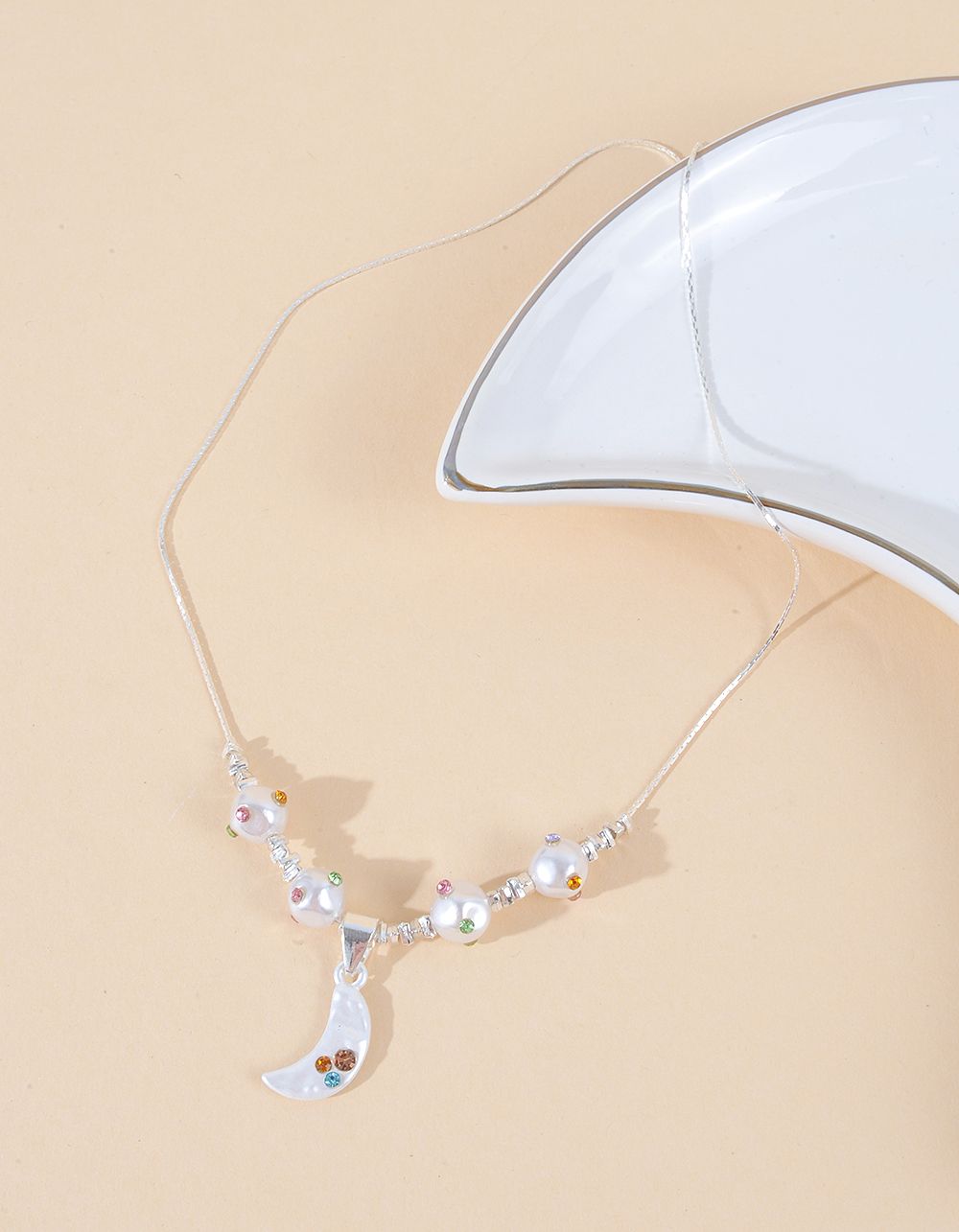 Підвіска на шию з кулоном у вигляді півмісяця з перлинами