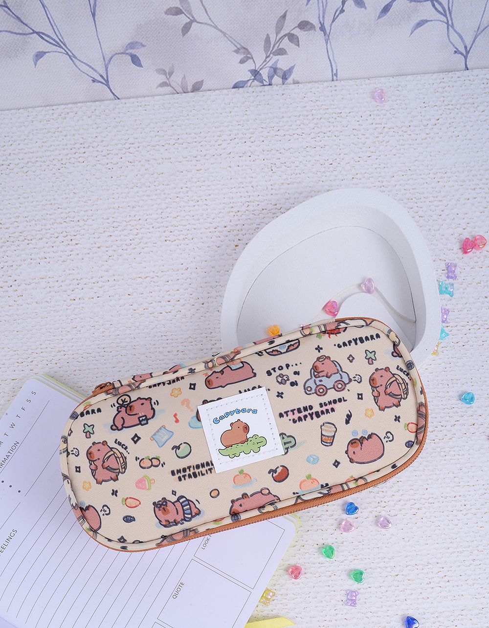 Пенал з брелоком та принтом капібари