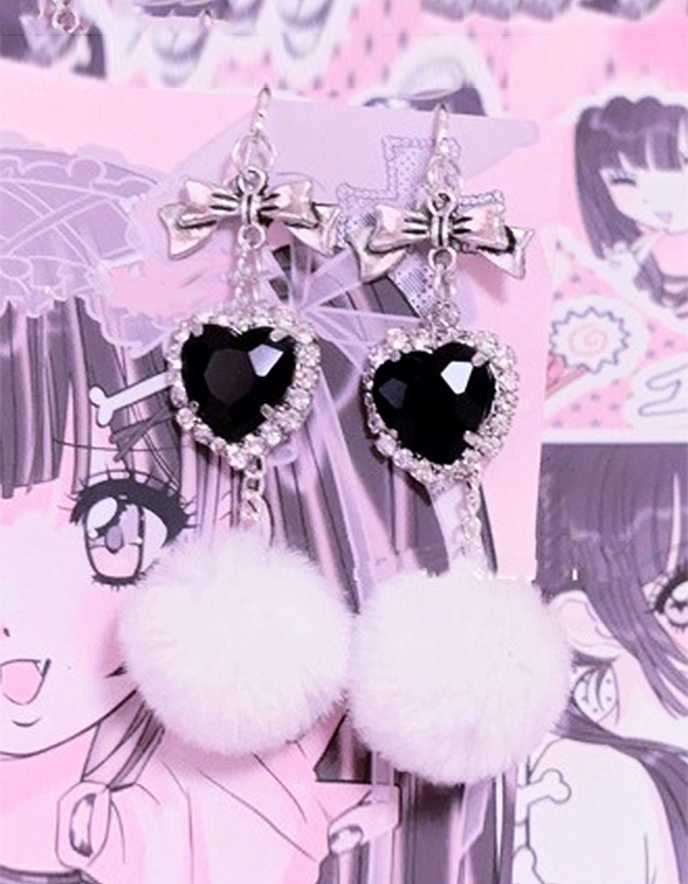 Сережки довгі у вигляді банта з серцем