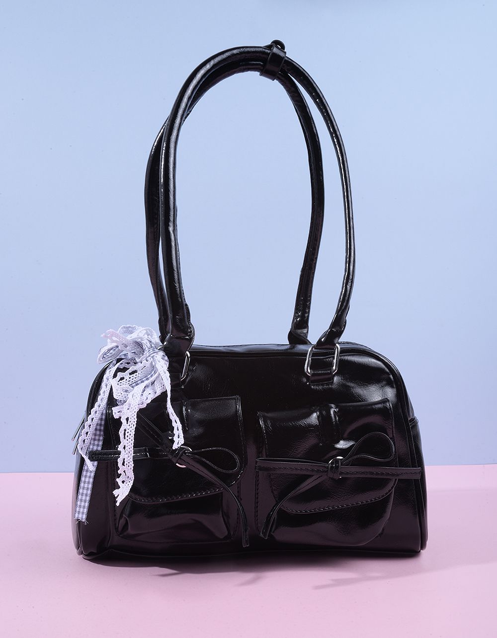 Сумка на плече з бантом у клітинку