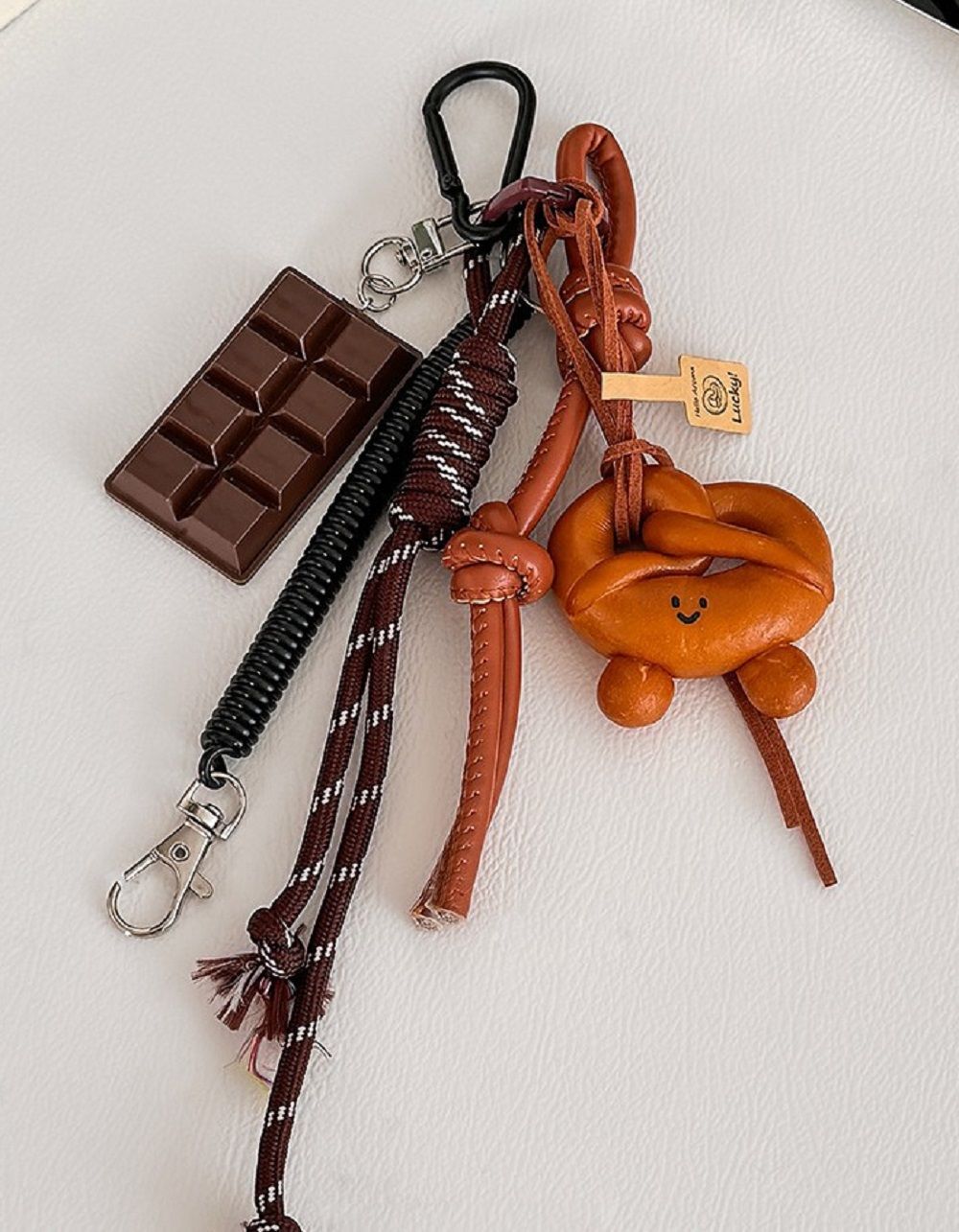 Брелок з підвісами у вигляді плитки шоколаду та бублика