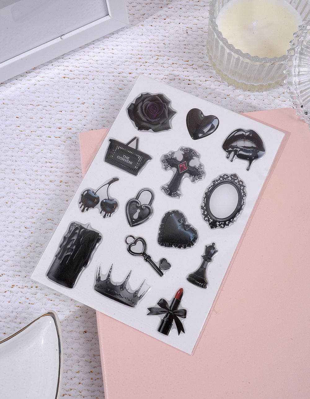 Стікери у наборі із зображенням хреста та сердець з квіткою