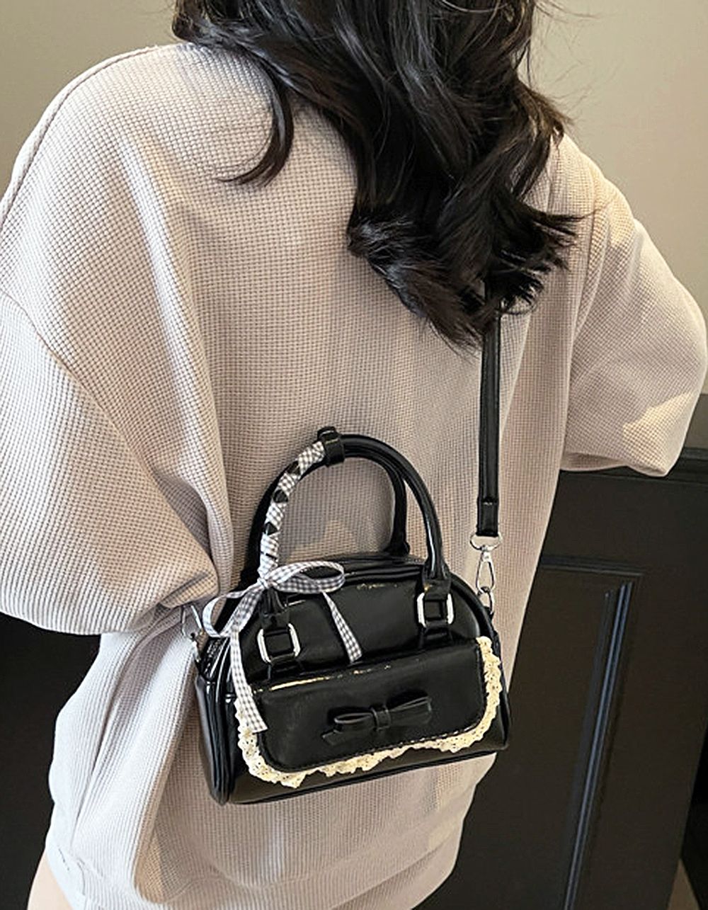 Сумка кросс боді з мереживом та бантом у клітинку