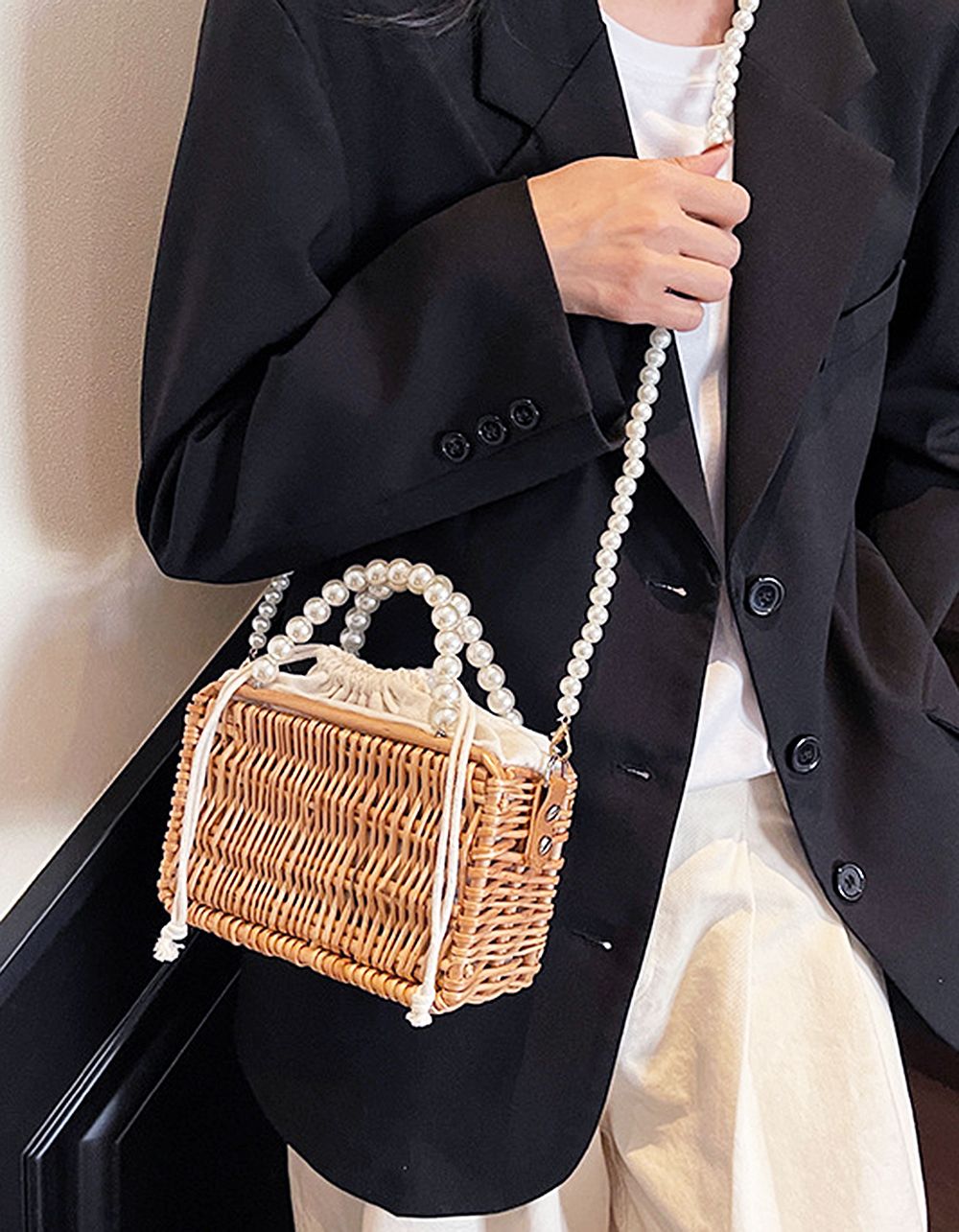 Сумка на ланцюжку зі штучної соломи з перлинами