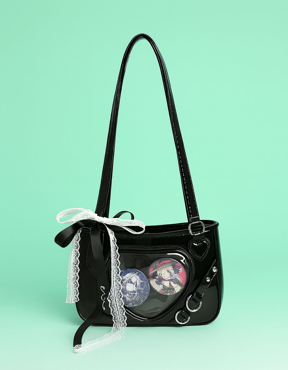 Сумка на плече з мереживним бантом та кишенею у вигляді серця