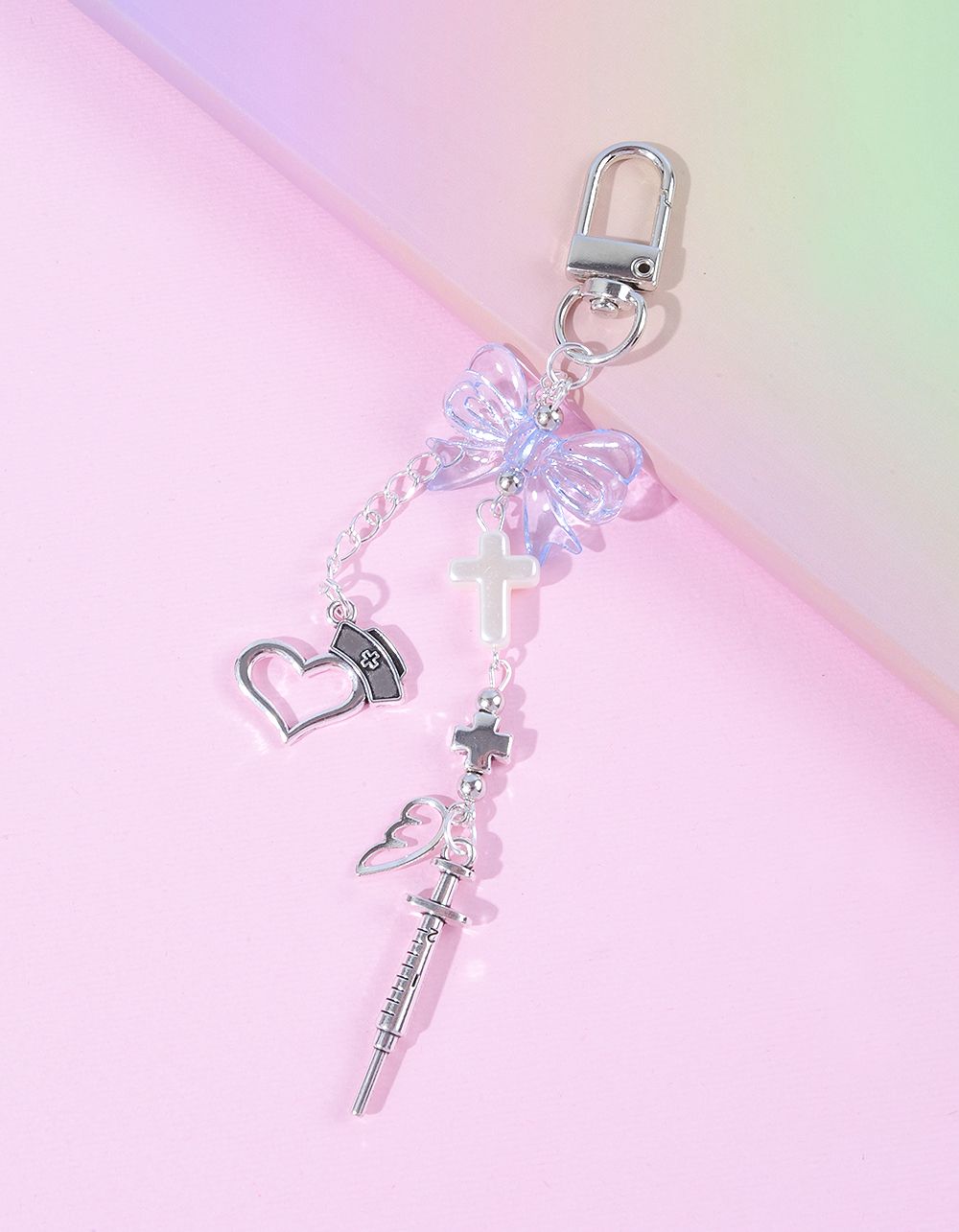 Брелок у вигляді банта з серцем та хрестом