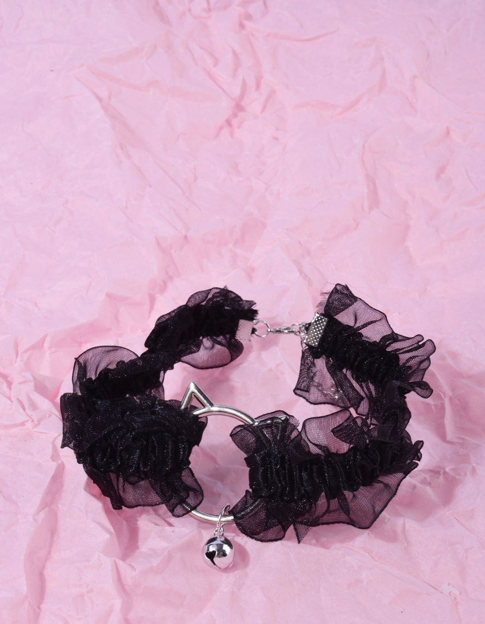 Чокер на шию мереживний з фурнітурою у вигляді кицьки