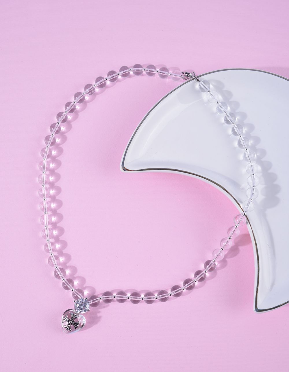 Підвіска на шию із намистин з кулоном у вигляді серця з хрестом
