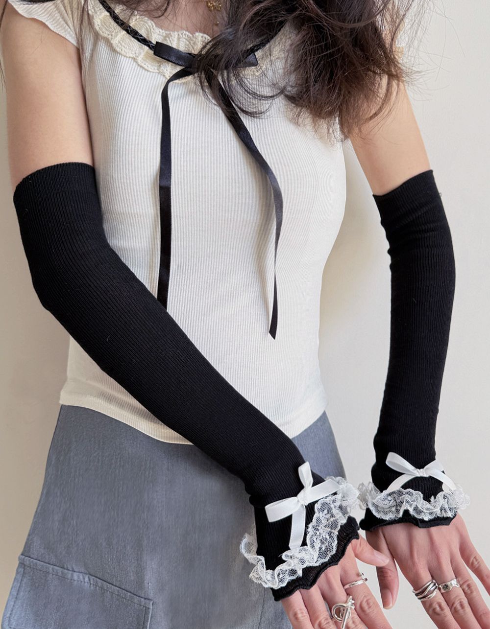 Мітенки з мереживом та бантом