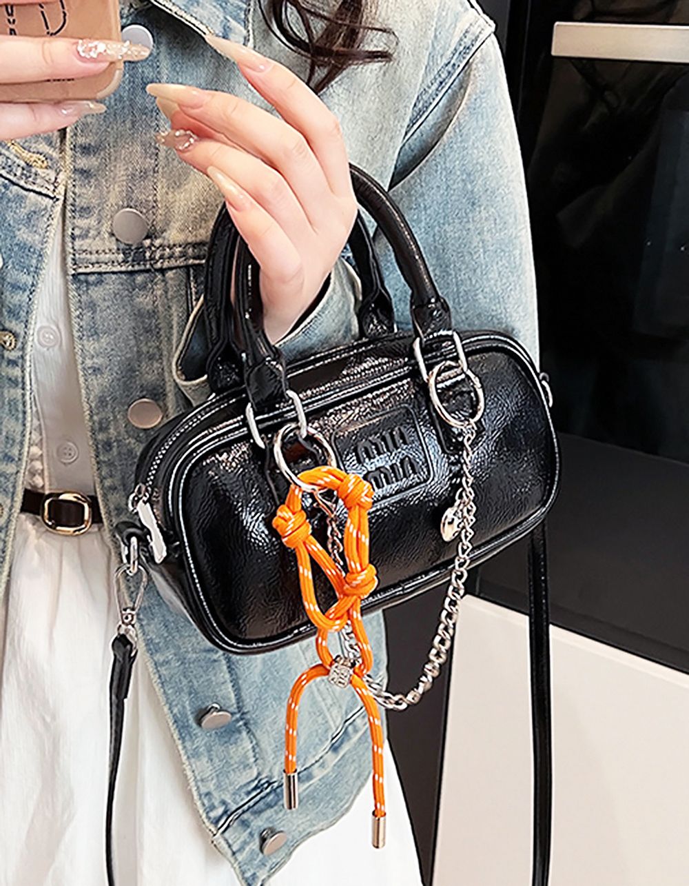 Сумка кросс боді з ланцюжком та плетеним брелоком