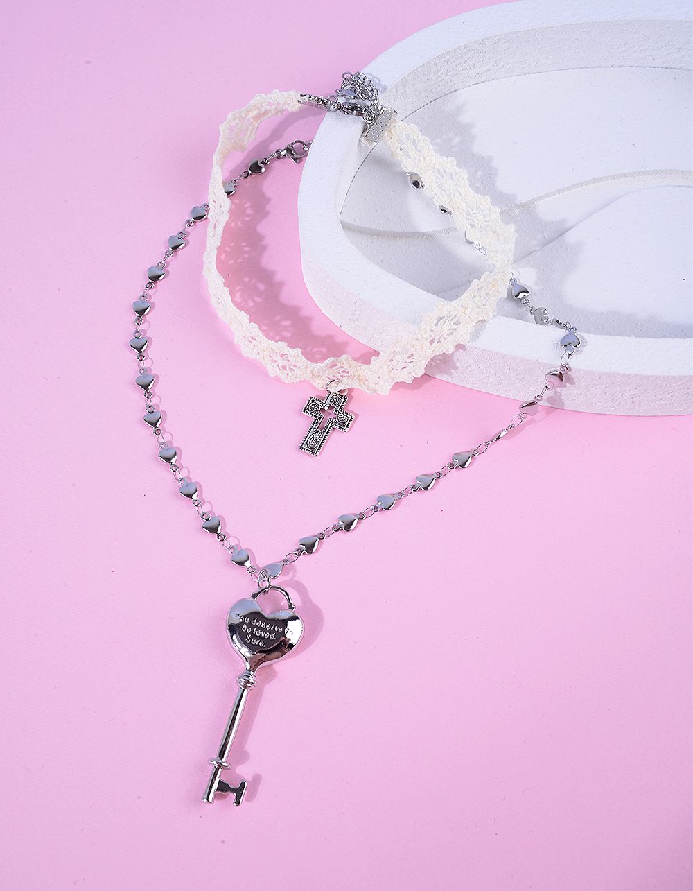 Підвіска на шию з мереживним чокером з кулоном у вигляді хреста та ключа