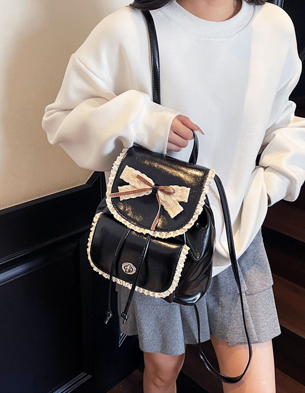 Рюкзак з бантом на клапані та мереживом