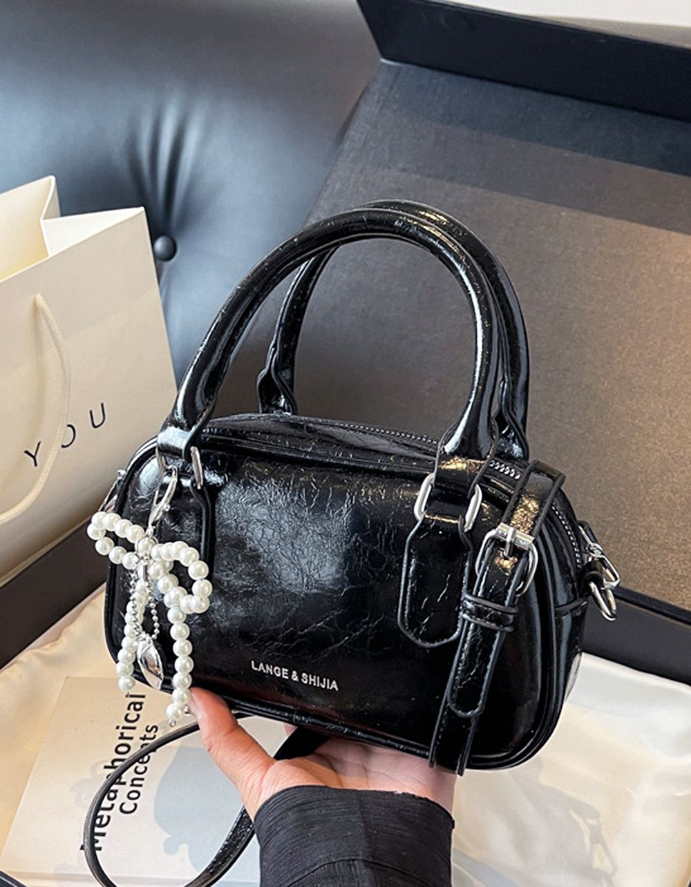 Сумка кросс боді з брелоком у вигляді банта із перлин